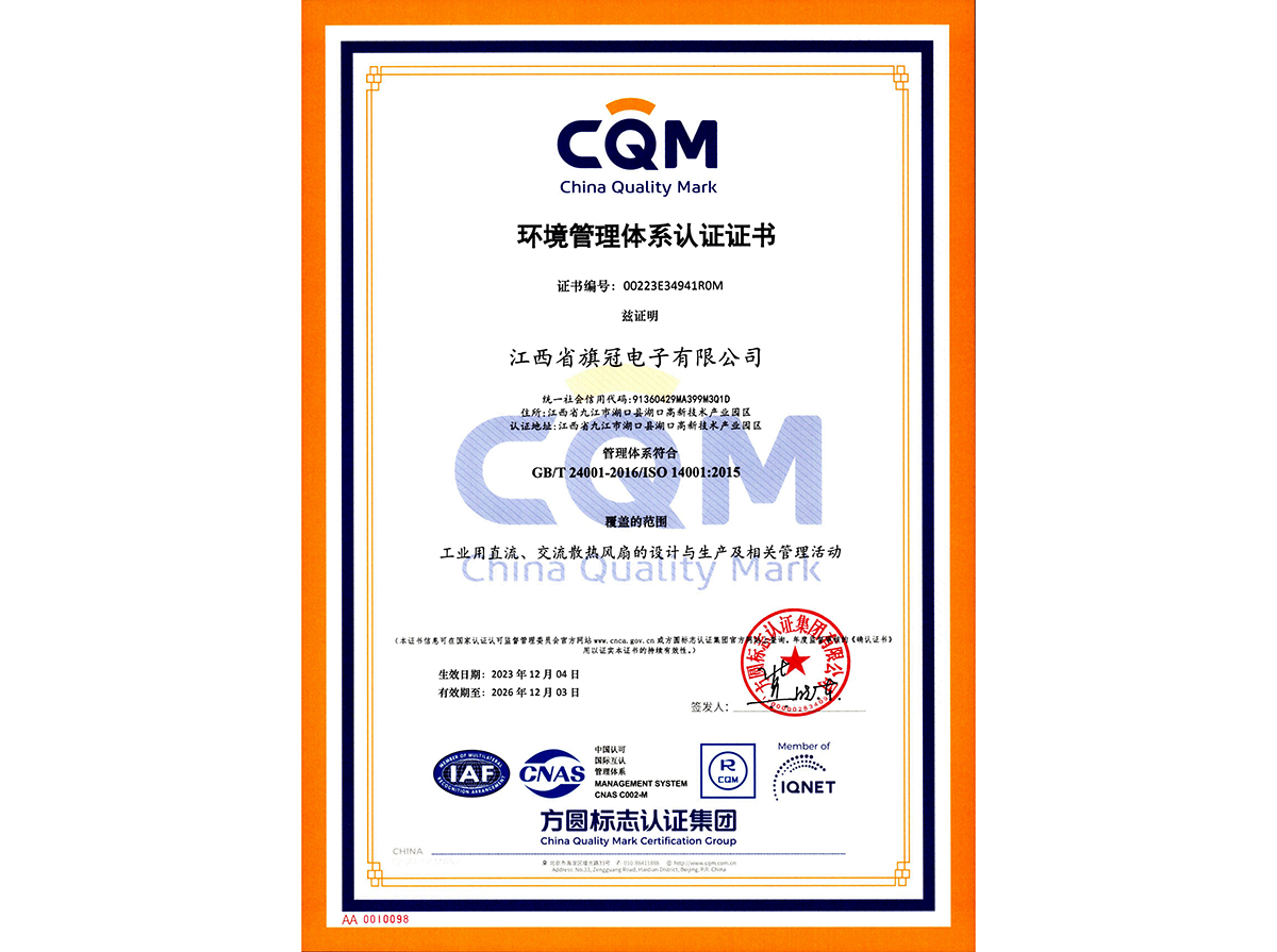 旗冠ISO14001证书